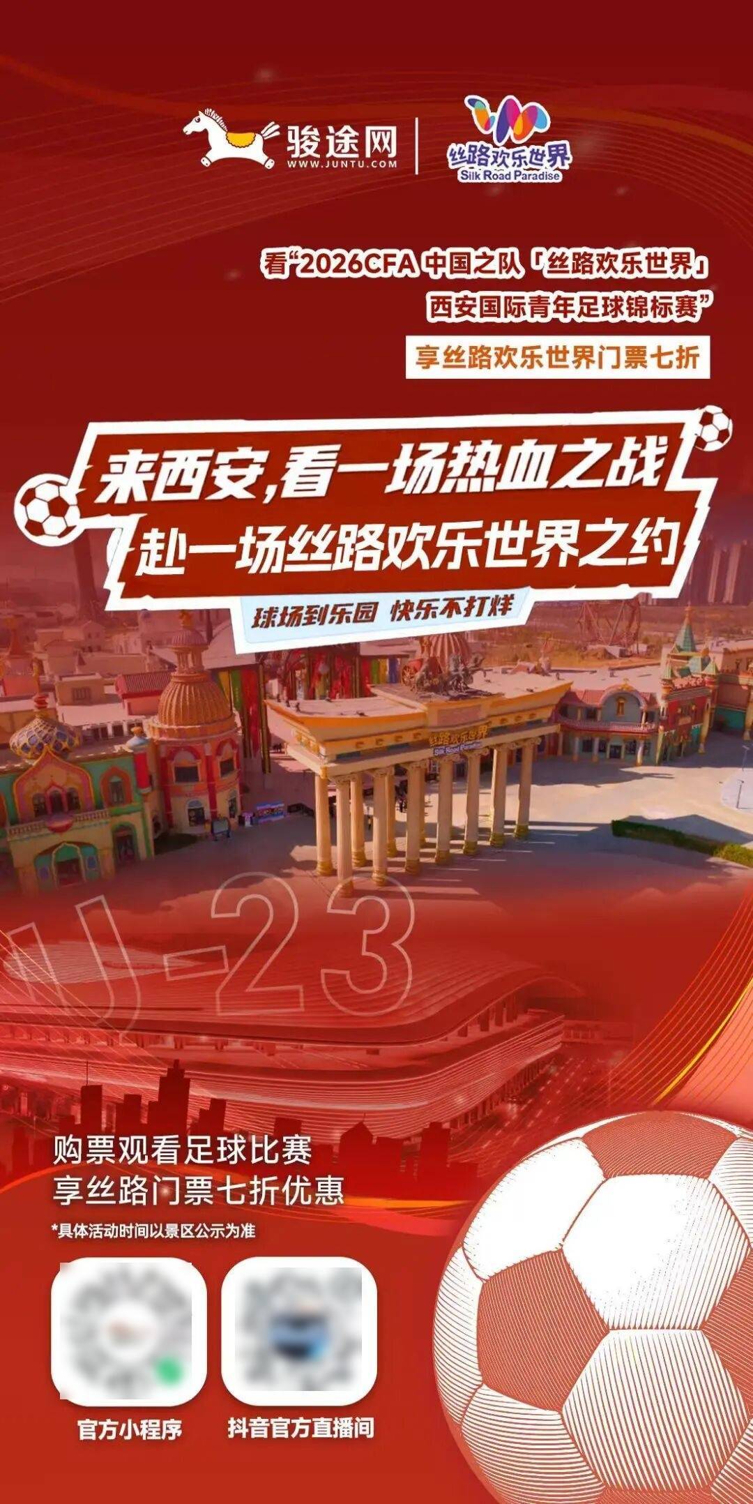 联动丝路欢乐世界推出票根专属福利,球迷凭赛事票根可享景区门票7折优惠,实现“体育+文旅”深度融合,有效延伸赛事消费场景,激活“票根经济”,提升赛事IP的商业与文化价值。