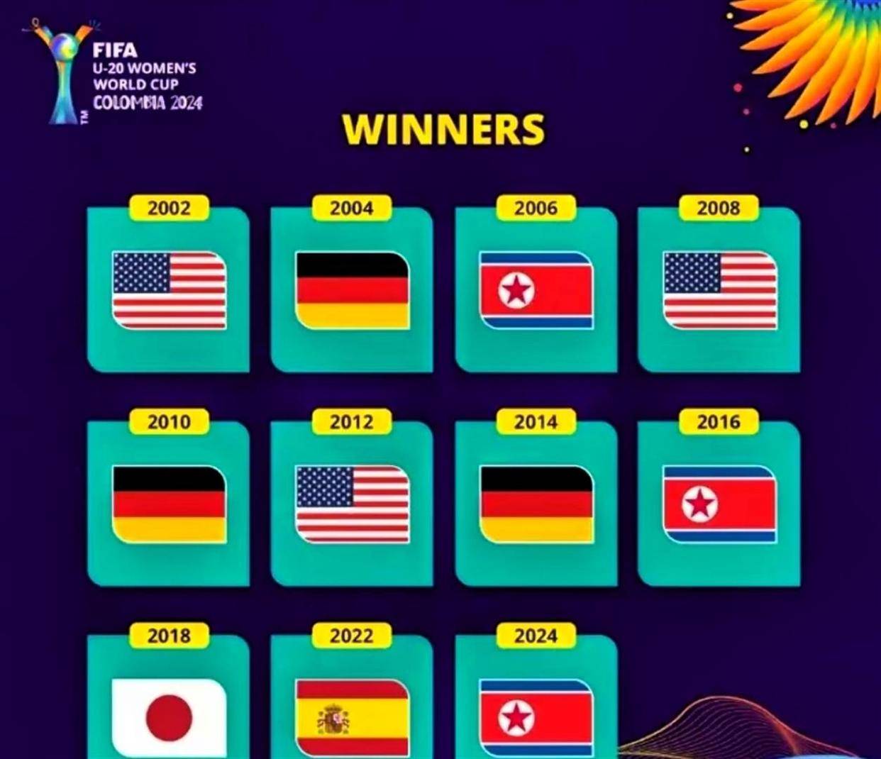 在另一半区,朝鲜队的表现更加恐怖。 她们在已经进行的四场比赛中打进22球,且一球未失。 1/4决赛中,朝鲜队以3比0的比分击败澳大利亚,展现了强大的攻击力。 这支朝鲜队刚刚在2024年夺得了U20女足世界杯冠军,这是她们队史第三次捧起该赛事的奖杯。