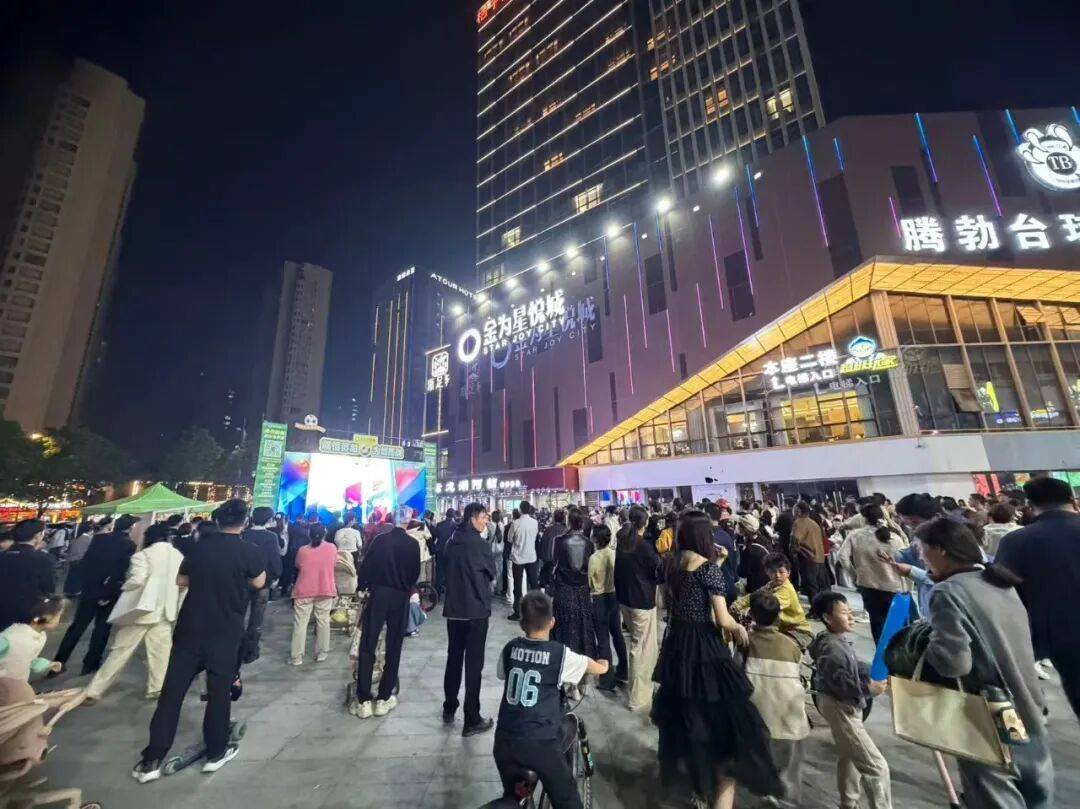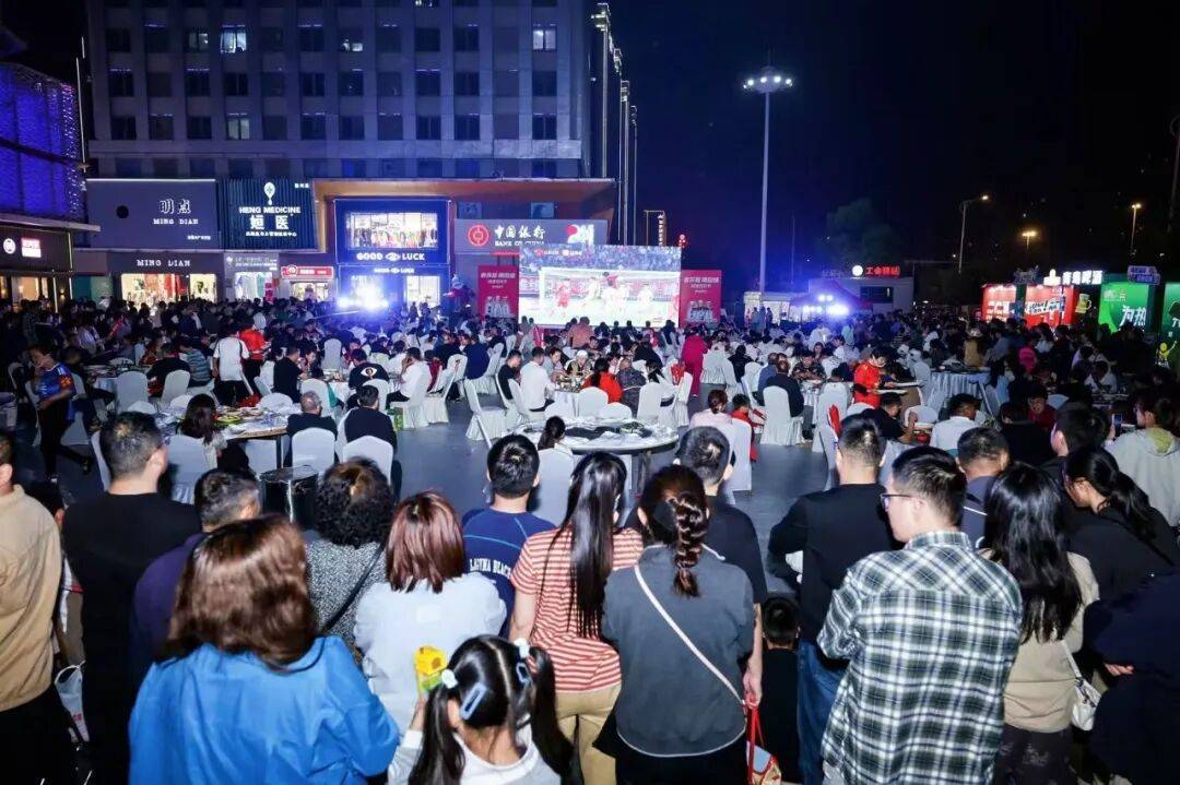 新沂吾悦广场高清大屏实时直播苏超赛事,龙虾啤酒节火热开嗨。现场发放观赛战袍、定制背包、应援棒,全场氛围爆棚,一起为徐州队加油助威!