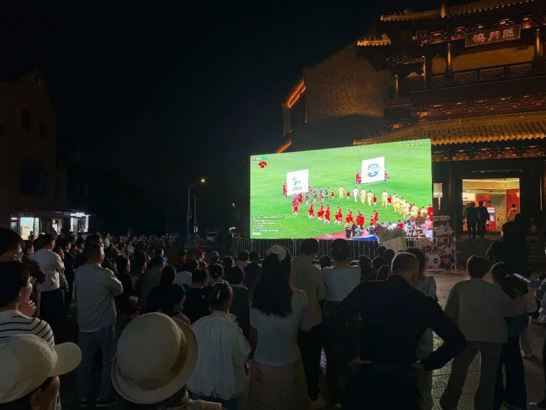 徐州饮食文化博物馆及彭城七里示范段火热开启苏超直播第二现场活动,现场人气爆棚、热闹非凡,成为市民休闲观赛的热门打卡地,活动现场大屏实时转播精彩赛事,氛围感拉满。