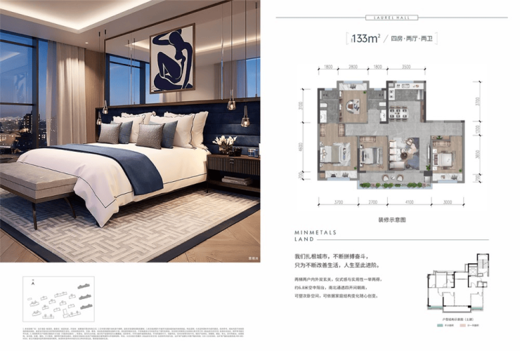 由五矿集团与香投集团强强联袂,打造城北改善人居典范。项目独创下沉式泛会所,全板式结构确保户户南北通透,配备专属电梯厅。