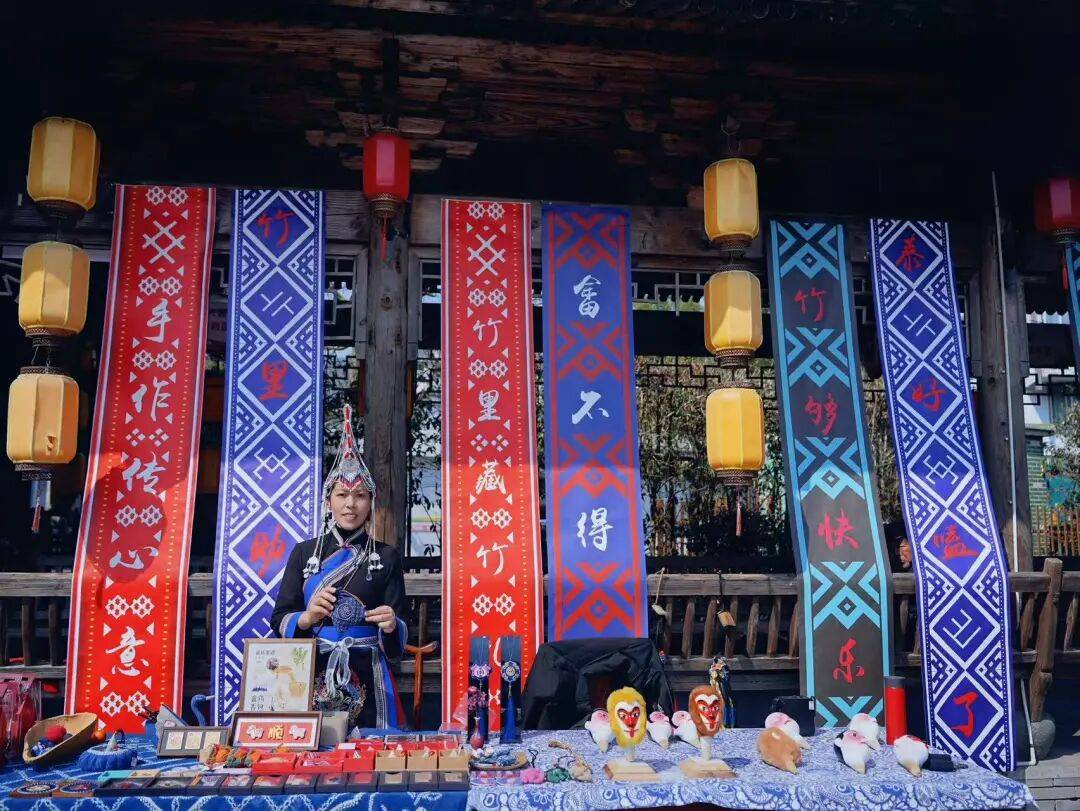 2月19日14点,天气晴好,竹里文化大广场内喜气洋洋,盛装打扮的畲族姑娘在此迎接游客。为了将畲味年俗打造成文旅品牌,当地卯足了劲开发地方文化产品,让游客不虚此行。现场,山哈市集展出小而精的物件,游客走过路过都会选购点畲族手作和民俗周边;游客还可以现学现跳一段畲族竹竿舞,感受传统体育的魅力;而随时出现的舞龙队伍,演员们表演高难度的舞龙动作,更是引来游客“哇”声一片。