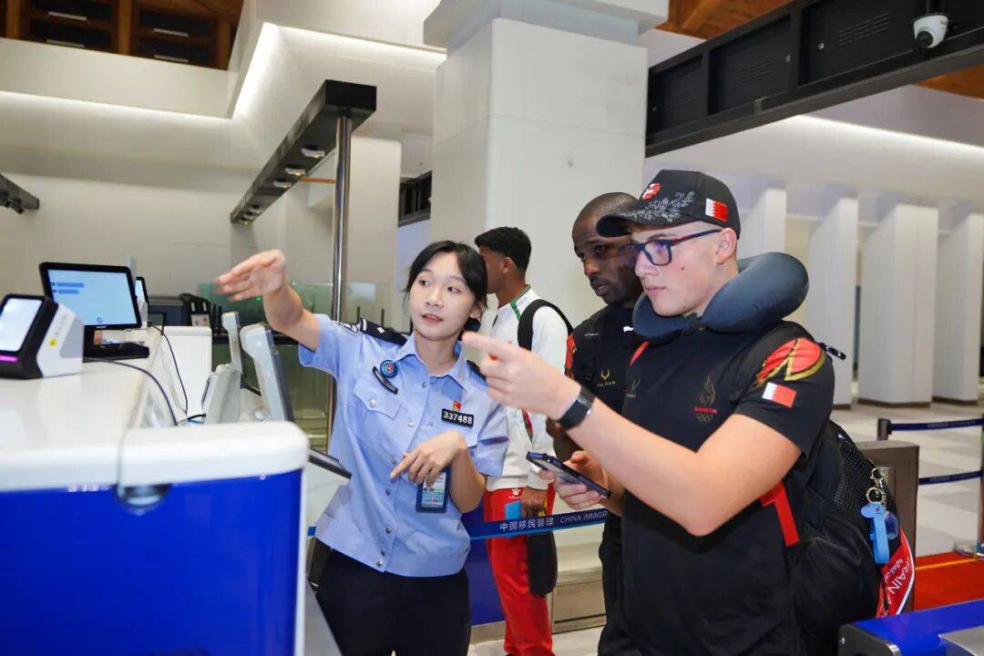多方联动,主动对接赛事执委会,提前掌握参赛人员信息及航班动态,实现通关“即到即办”,对未提前获取身份注册卡、签证及临时紧急来华相关人员,优化口岸签证、临时入境许可签发审核,全力保障所有与会人员高效入境、顺利参会。